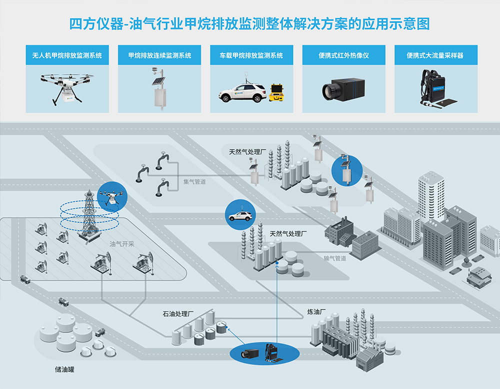 圖4 四方儀器-油氣行業(yè)甲烷排放監(jiān)測(cè)整體解決方案的應(yīng)用示意圖