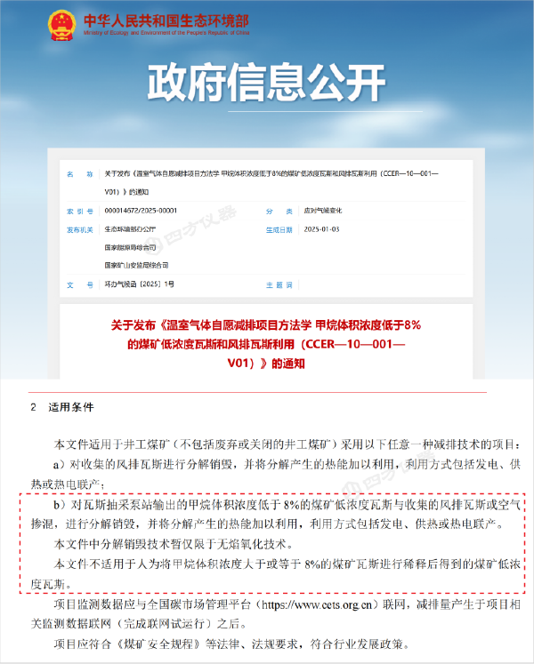 2025年1月正式發(fā)布的《溫室氣體自愿減排項目方法學(xué) 煤礦低濃度瓦斯和風(fēng)排瓦斯利用》規(guī)定,甲烷濃度低于8%的煤礦低濃度瓦斯(含乏風(fēng)瓦斯)通過無焰氧化技術(shù)分解銷毀,并將產(chǎn)生的熱能用于發(fā)電、供熱或熱電聯(lián)產(chǎn),即可參與國家核證自愿減排量(CCER)市場;由此產(chǎn)生的顯著溫室氣體減排量可開發(fā)為CCER項目,形成規(guī)模可觀的碳資產(chǎn),通過市場交易實現(xiàn)碳減排經(jīng)濟效益。