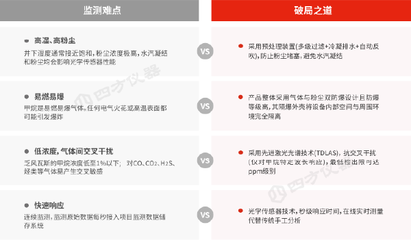 (2) 解決方案: 在抽采泵站出口管道上,安裝四方儀器生產(chǎn)的原位激光氣體分析儀(GasTDL-3100),實時在線監(jiān)測甲烷濃度。